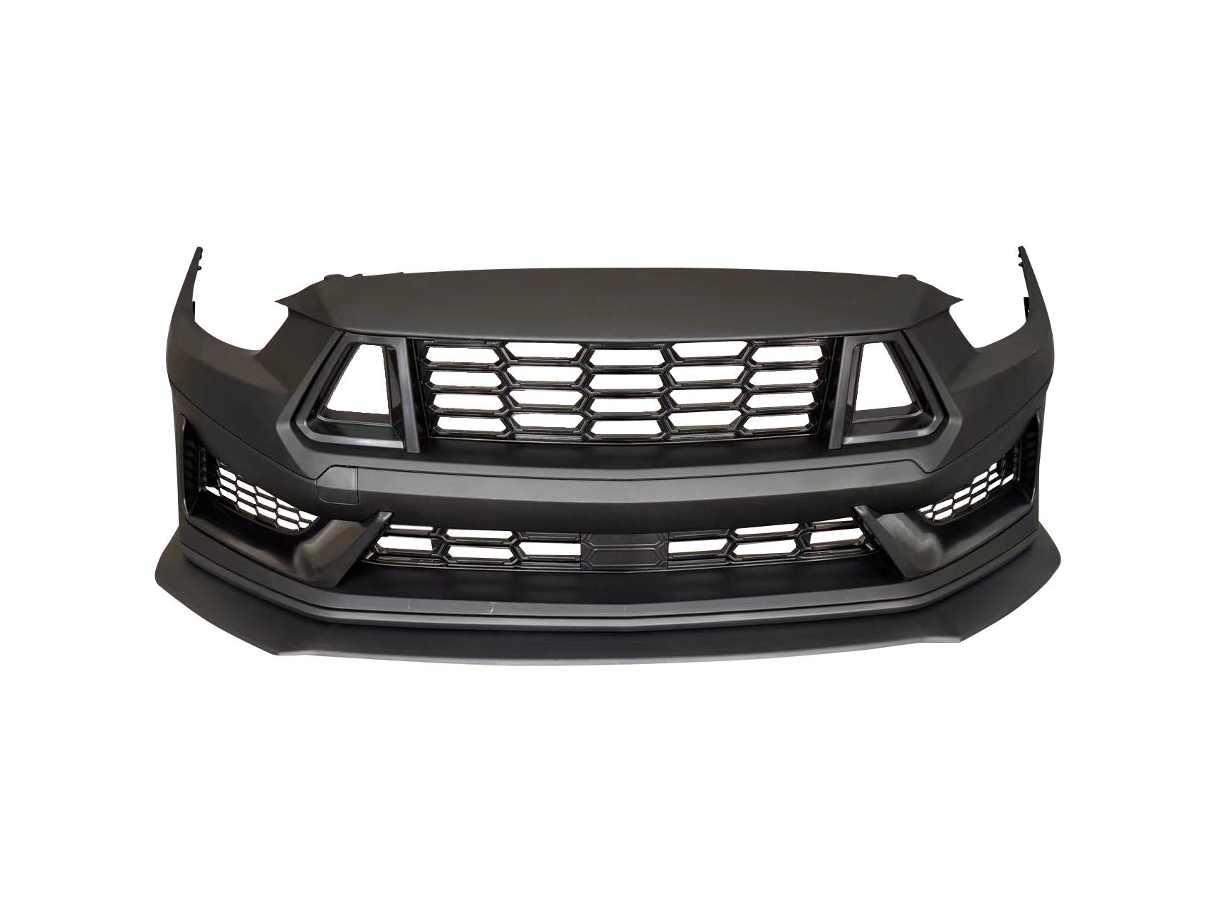 Transform your 2015-2017 Mustang S550 with the S650 Dark Horse Conversion Bumper Kit. Inspired by the 2024 Dark Horse, this kit features an aggressive design with sharp lines, larger air intakes for improved cooling, and a race-inspired lower splitter. Made from durable ABS plastic and polypropylene, it offers lightweight resilience against minor impacts while maintaining a sleek, modern look.