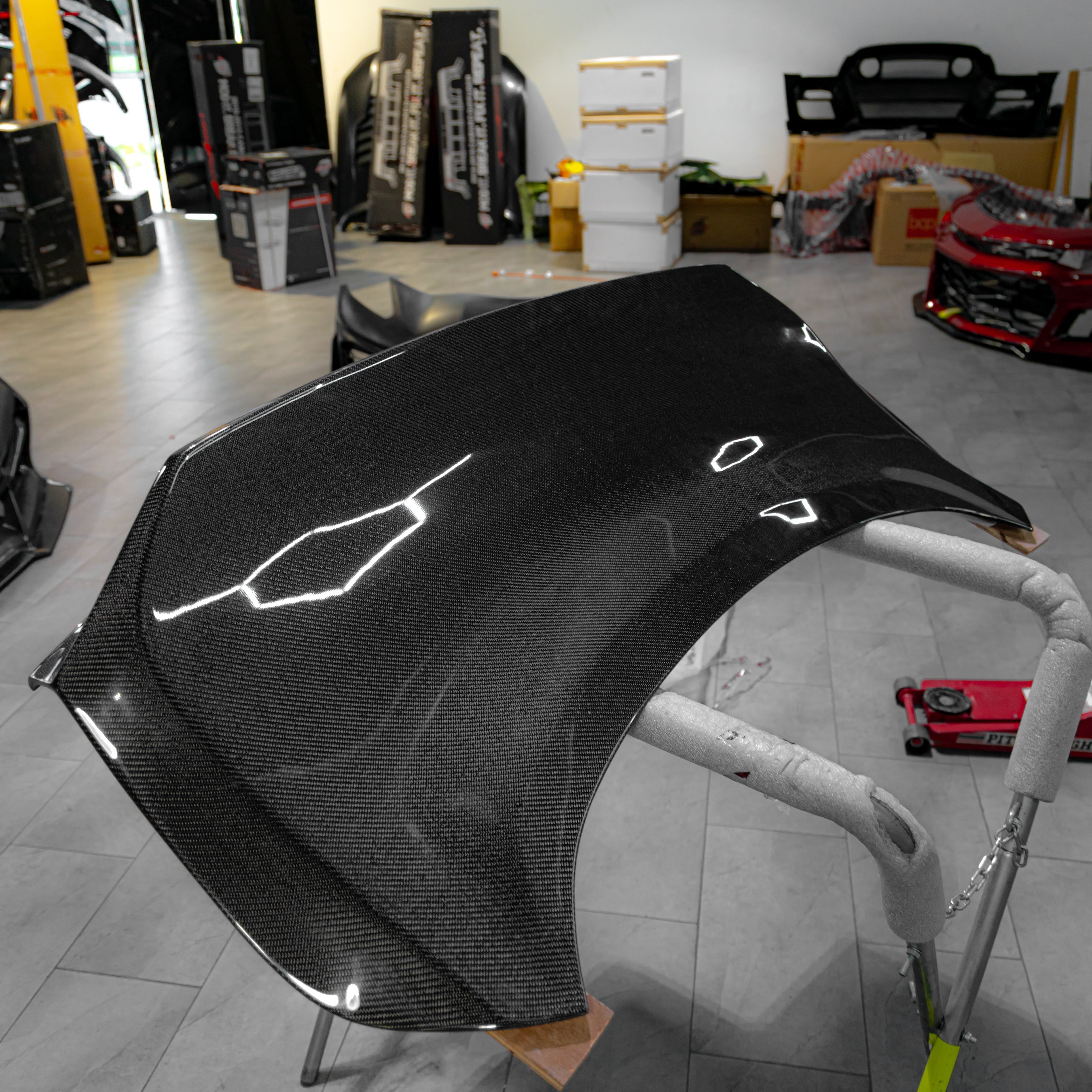 *Carbon fiber "skeleton" bonded to underside of carbon fiber hood - reduced weight