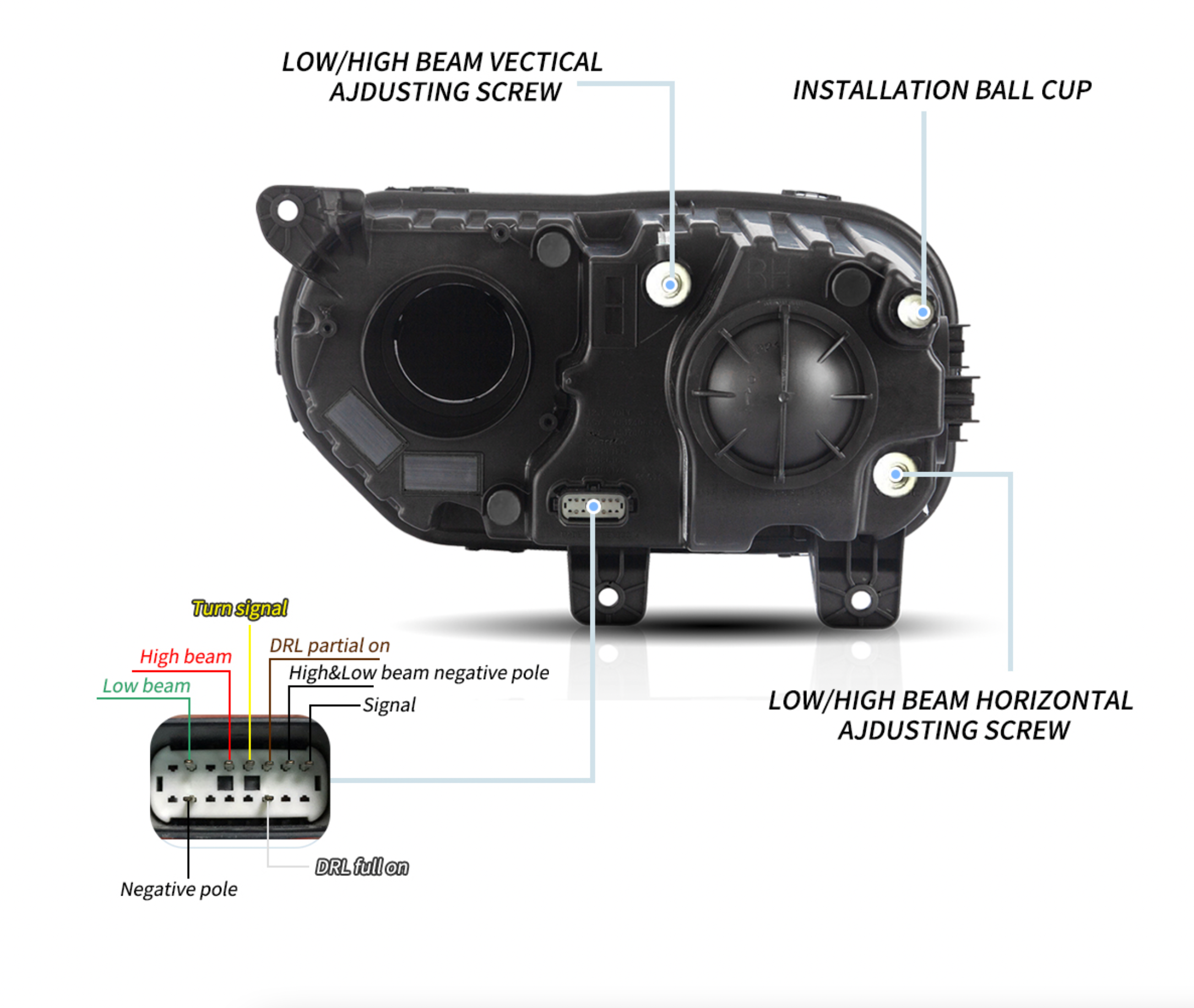 - Not Fit For 2017-2021 Dodge Challenger With Stock Halogen Headlight (Pin (Male) 12 Position)