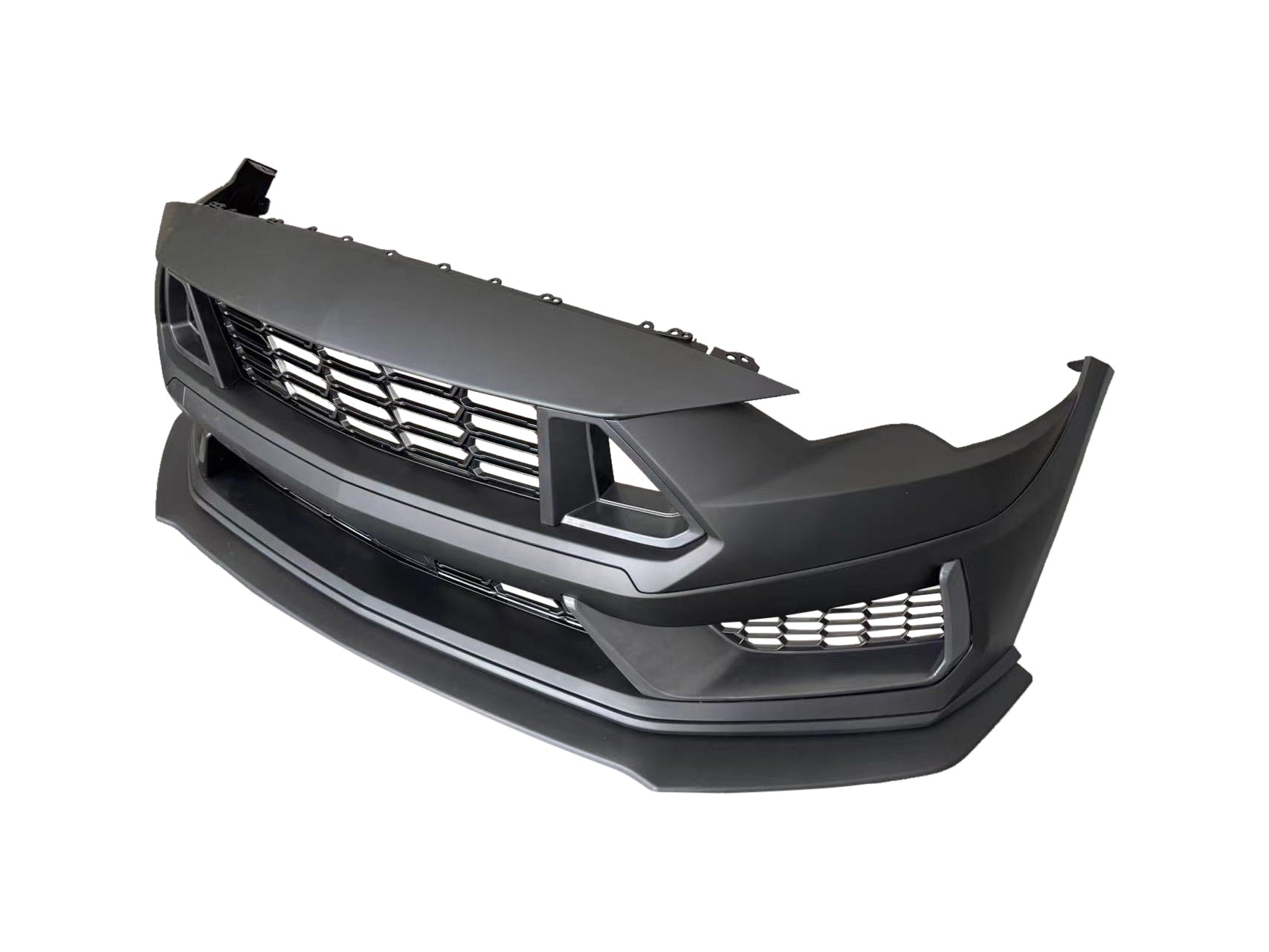 Aggressive Dark Horse-Inspired Styling. Transform the look of your 2018-2023 Ford Mustang with the S650 Dark Horse Style Front Bumper Conversion Kit. Designed to bring the bold, modern aesthetics of the 2024 Mustang Dark Horse to your S550 Mustang, this kit features sharp lines, larger air intakes, and a race-inspired lower front splitter for an aggressive, track-ready appearance.