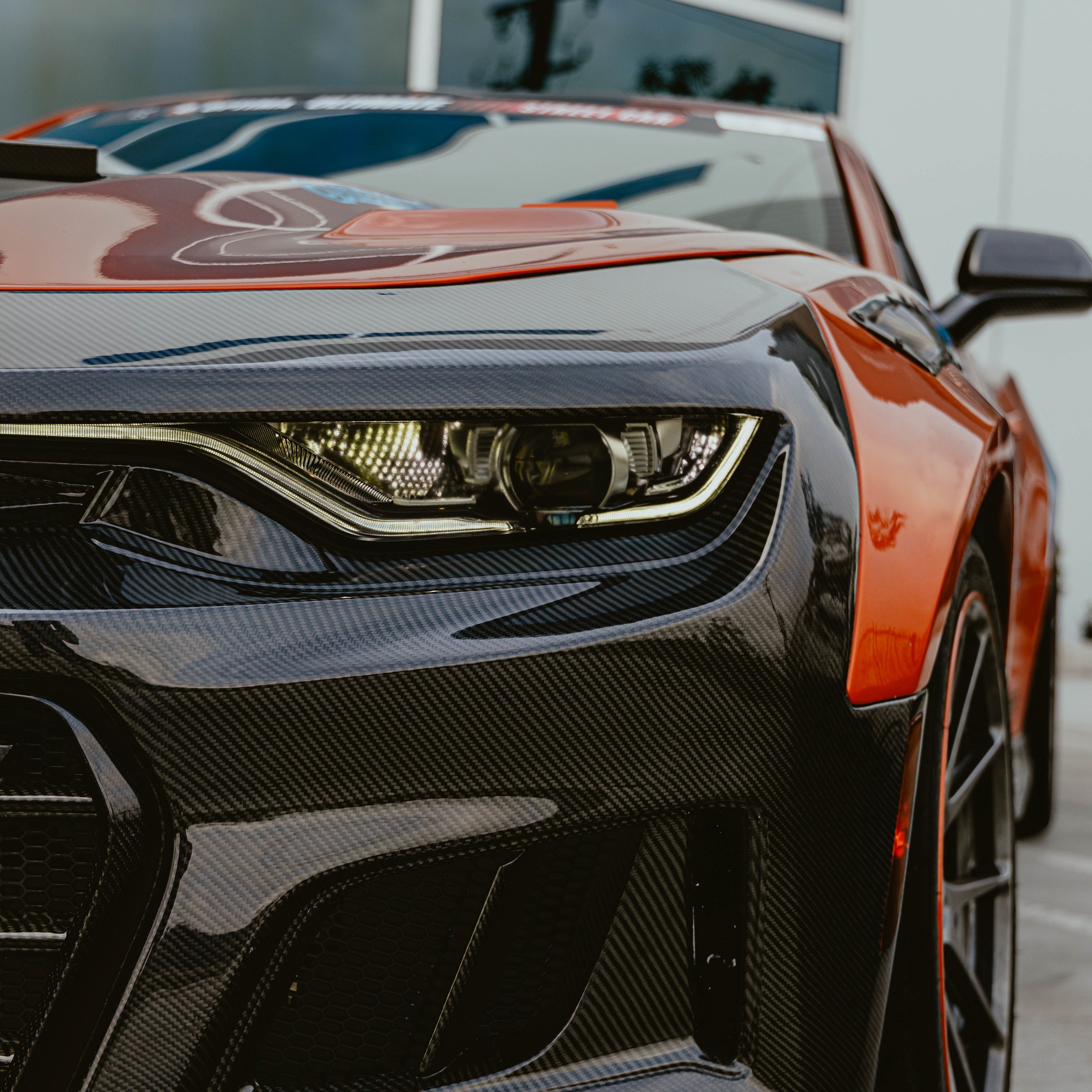 High-Performance Construction. Constructed from premium carbon fiber weaves, this one-piece bumper offers exceptional strength and durability, yet is lightweight to maximize speed and handling. The high-gloss automotive grade clear coat contains proprietary UV-resistant properties to preserve its deep, striking look. Crafted to improve aerodynamics, this bumper minimizes drag and enhances downforce, giving you the edge on the road and track.