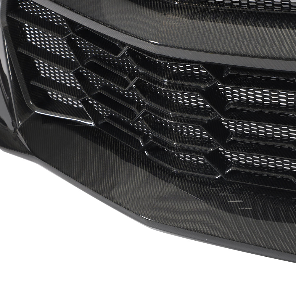2019-2025 Chevy Camaro SS RS LT Black Panther ZL1 1LE 1PC Full Gloss Carbon Fiber Track Package Front Bumper Conversion for RS Headlights