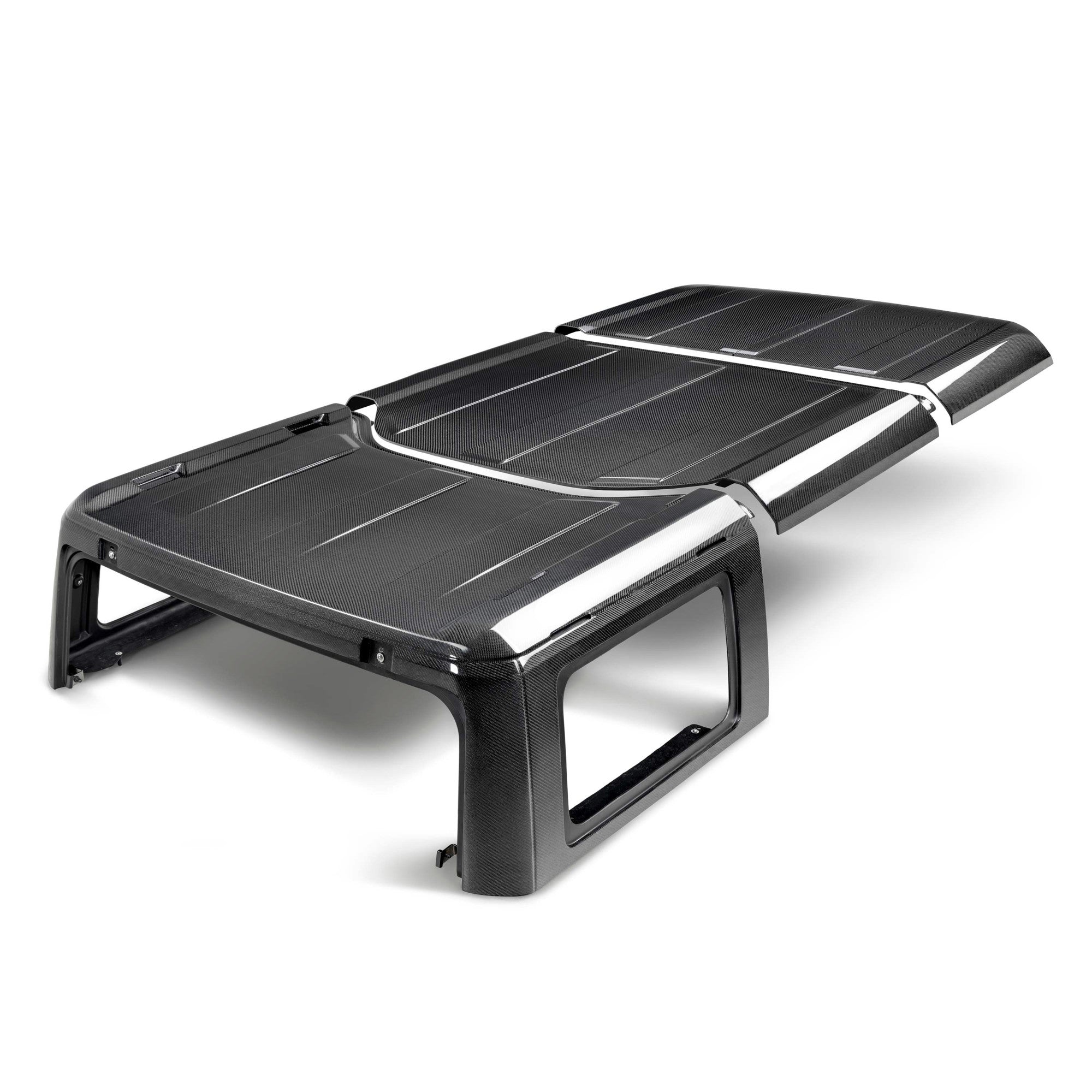 Constructed with vacuum-infused 3K, 2x2 twill carbon fiber cloth, this hardtop delivers a lightweight yet robust solution for off-road environments. A gloss finish with UV inhibitors ensures long-lasting protection and a show-ready aesthetic without the need for painting. For added strength and stability, honeycomb inserts reinforce the design, making it ideal for rugged terrain.