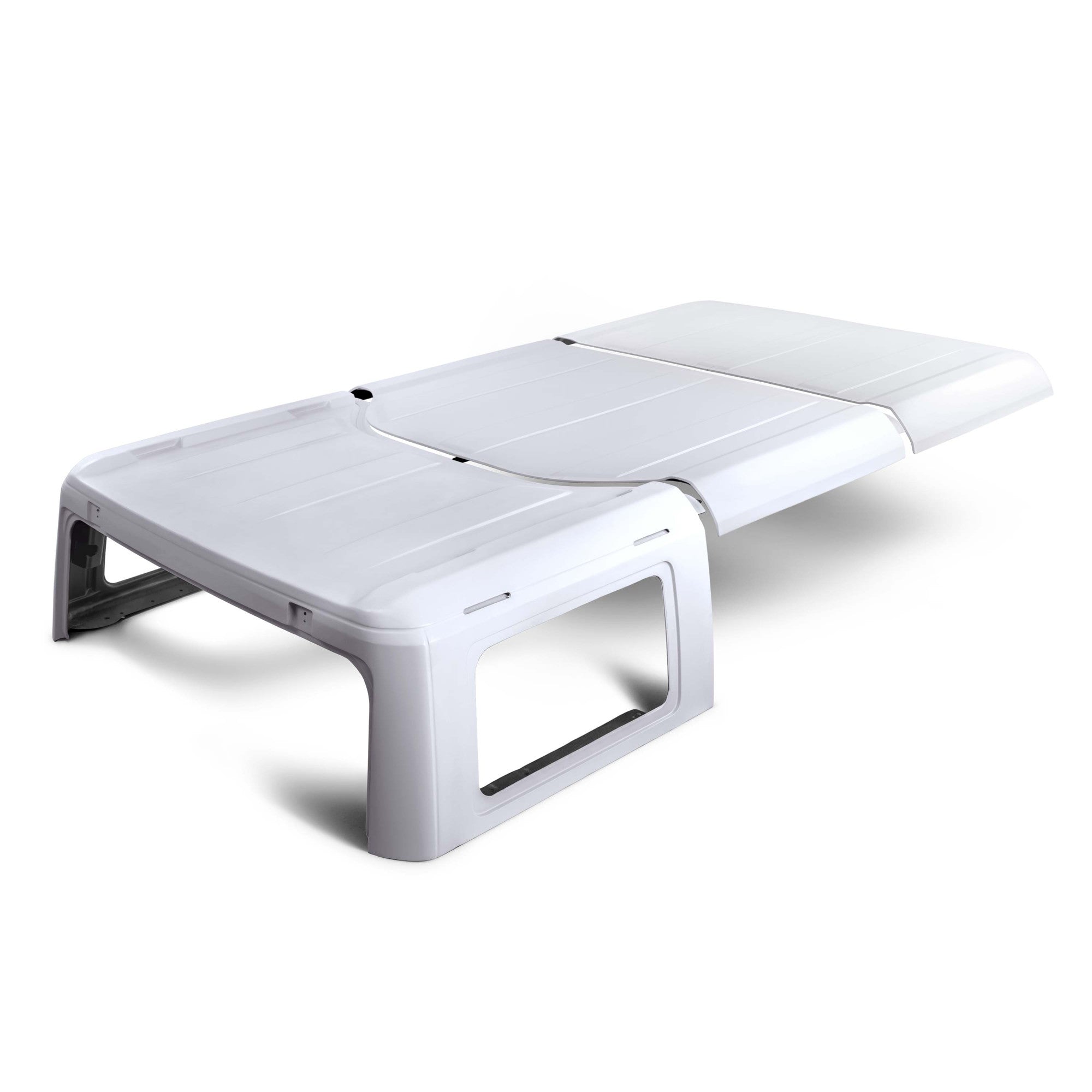 Quarter locks and J-hooks ensure a secure and precise fit, while composite honeycomb inserts provide added strength for off-road durability. The hardtop supports a dynamic roof rack weight capacity of 110 pounds and a static capacity of 450 pounds, making it ideal for outdoor gear and accessories.