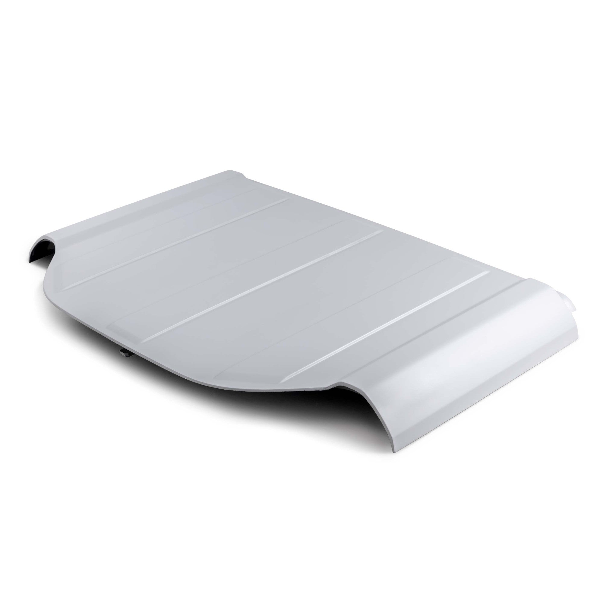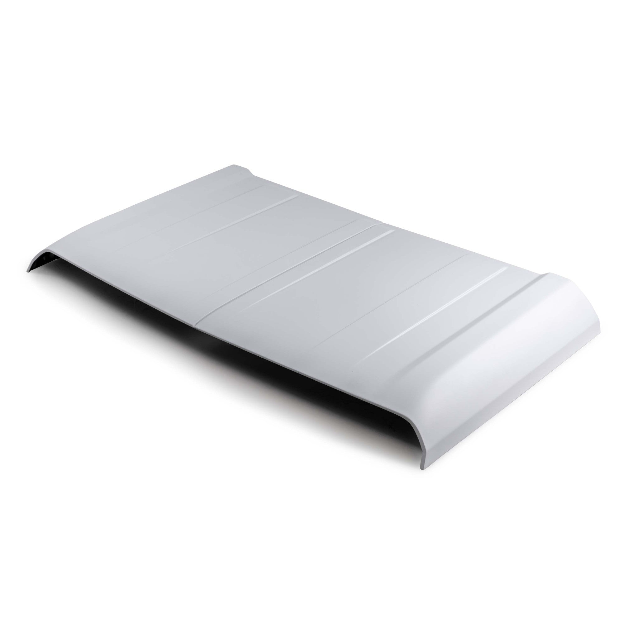 Constructed using a vacuum-infused process, the hardtop is crafted with eight layers of woven fiberglass cloth, ensuring exceptional strength and durability. Finished in a temporary matte gray coating, this hardtop requires standard pre-paint preparation, including sanding and primer, for customization to your desired color. While occasional surface blemishes may occur during manufacturing, these are easily addressed during the preparation process.