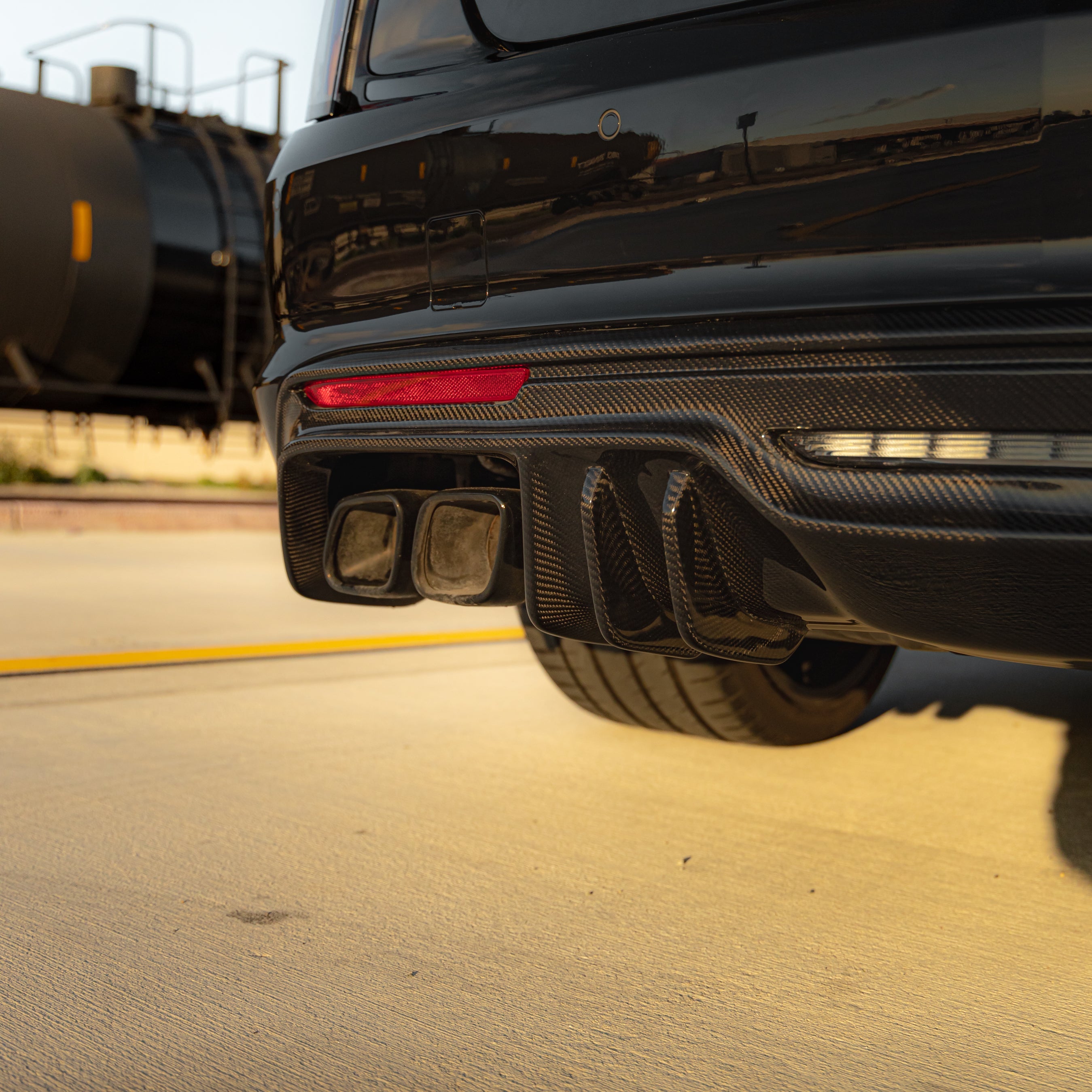 Transform your 2022-2025 Cadillac CT5-V / Blackwing with the Type-ST Carbon Fiber Rear Diffuser, meticulously crafted to deliver an aggressive, sporty look far superior to the optional OE Blackwing unit. Featuring a robust autoclave construction with pre-preg 3K, 2x2 twill carbon fiber, this diffuser guarantees unmatched strength, lightweight performance, and exceptional durability. Its automotive-grade clear coat, enriched with UV inhibitors, protects against fading and maintains the diffuser's glossy, showroom-quality finish.